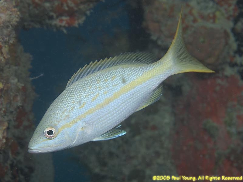 Mahogany snapper (left- juvenile), Lutjanus mahogoni