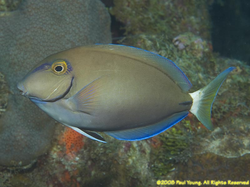 Ocean surgeonfish, Acanthurus bahianus (left - juvenile)
