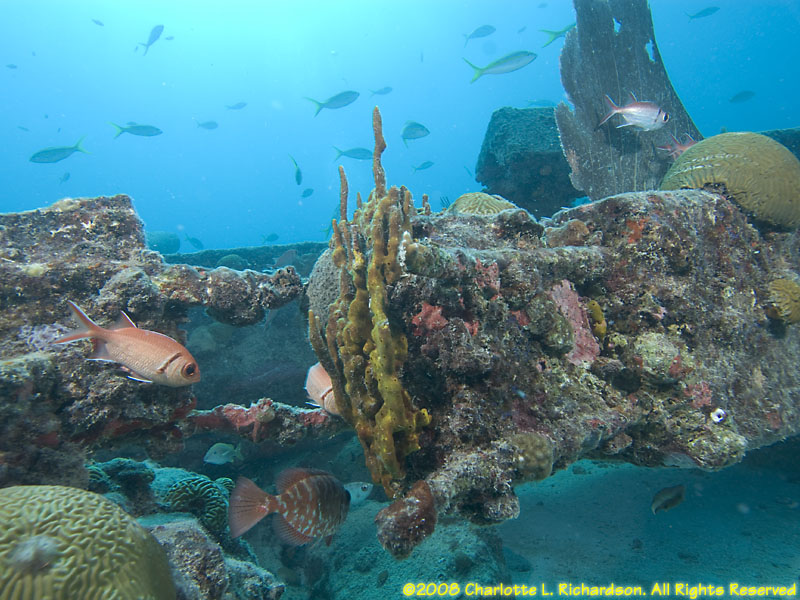 The shipwrecks off the south side of Sint Maarten provide a solid substrate and so were not as much damaged by the recent hurricane as the reefs and sponge gardens were. Many of these wrecks were sunk as diving attractions and fish habitats.