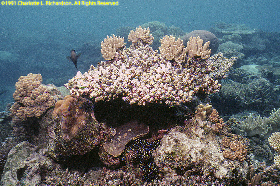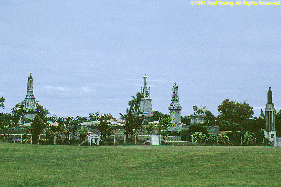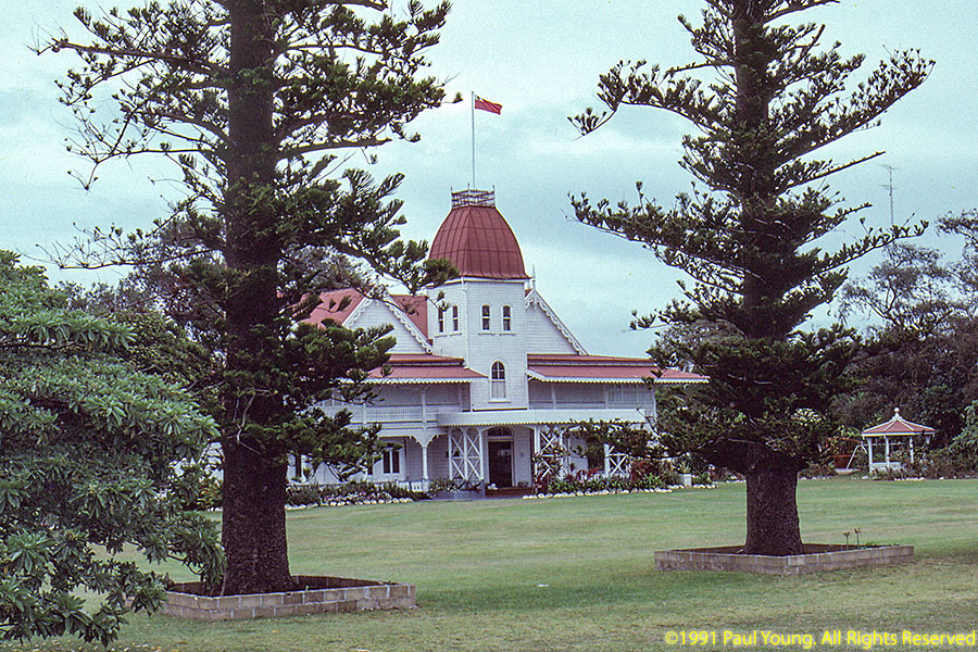 The main island is Tongatapu. The whole island is an uplifted block of coral limestone no more than 30' above sea level anywhere which tilts into the sea at the northern coast. Most of the island is covered with coconut-palm plantations. We visited Tonga in 1991, staying on Tongatapu.