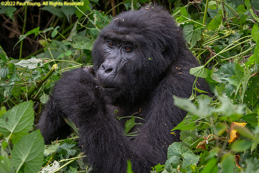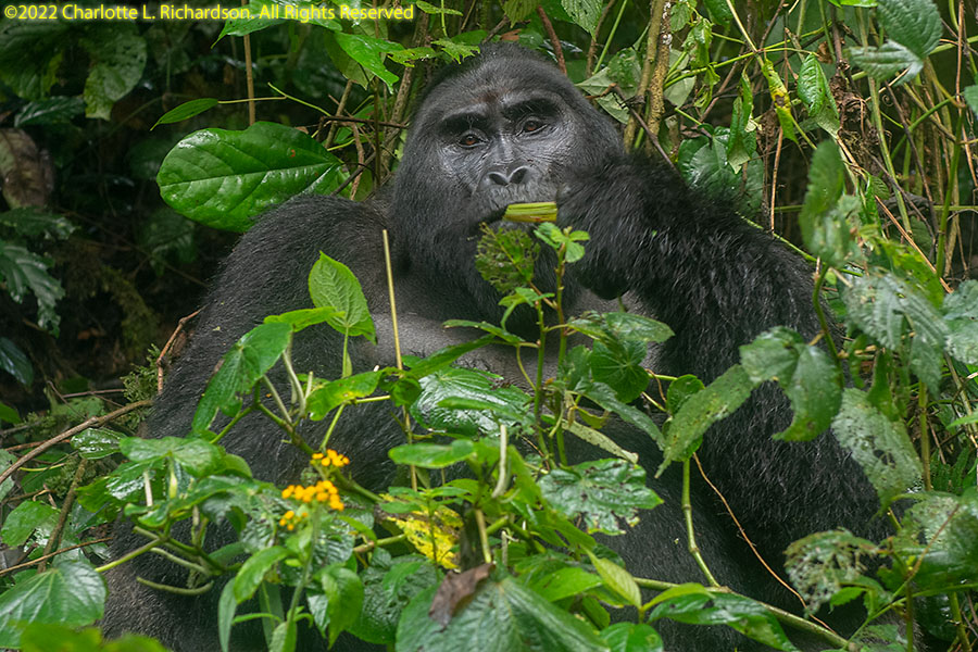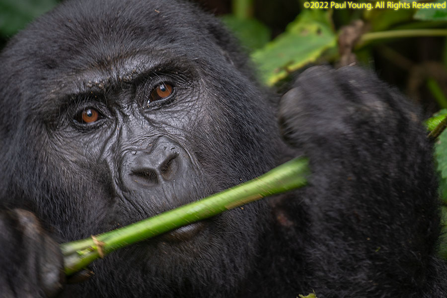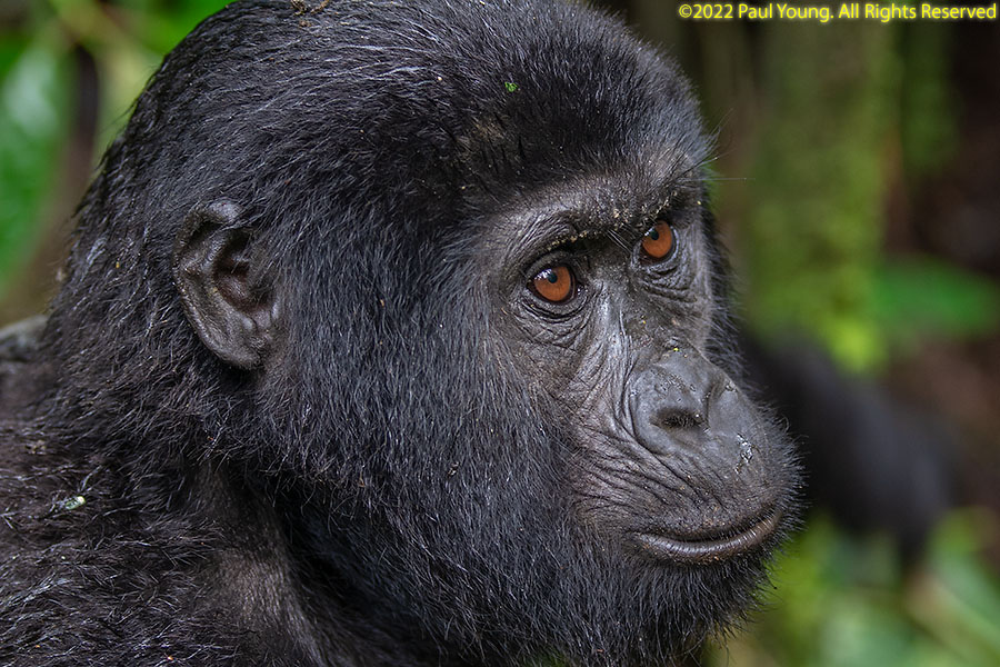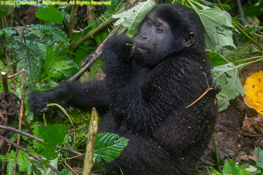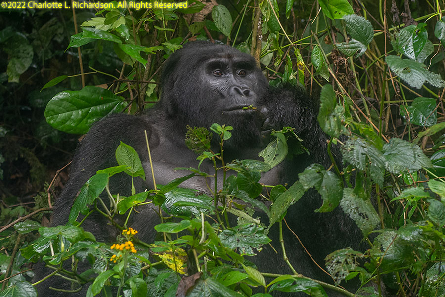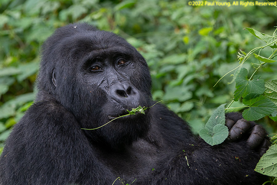 The main tourist activity is gorilla tracking. These animals are the eastern mountain gorilla, Gorilla beringei beringei.