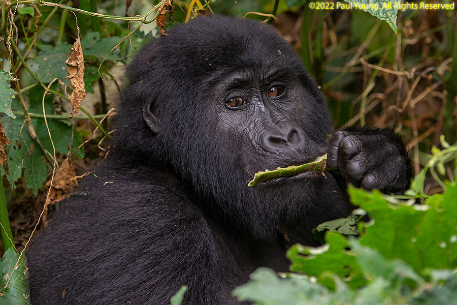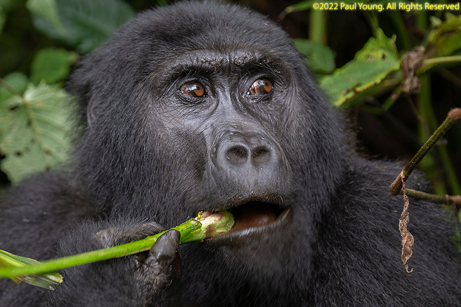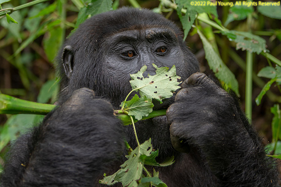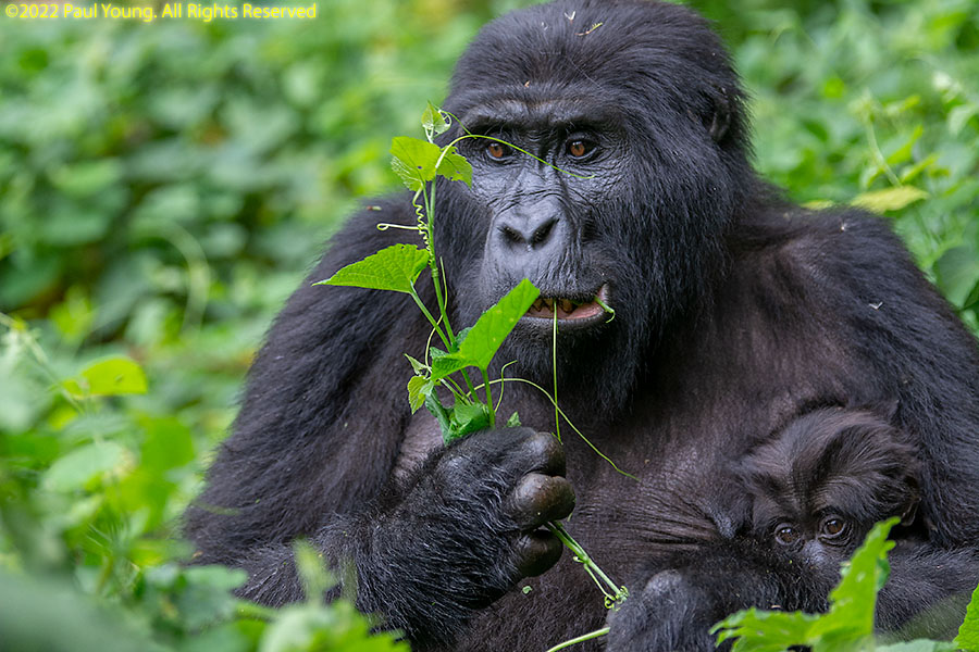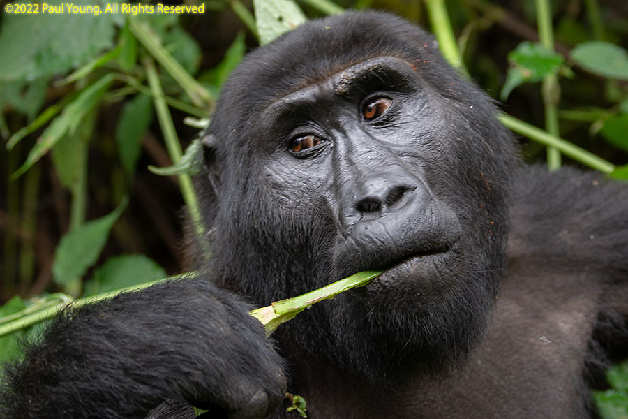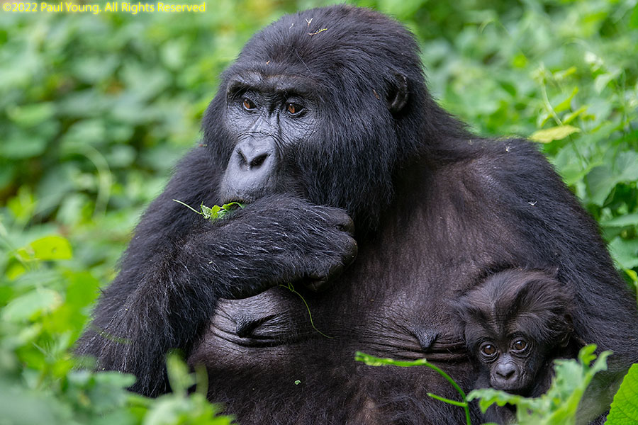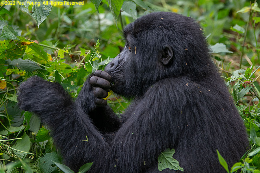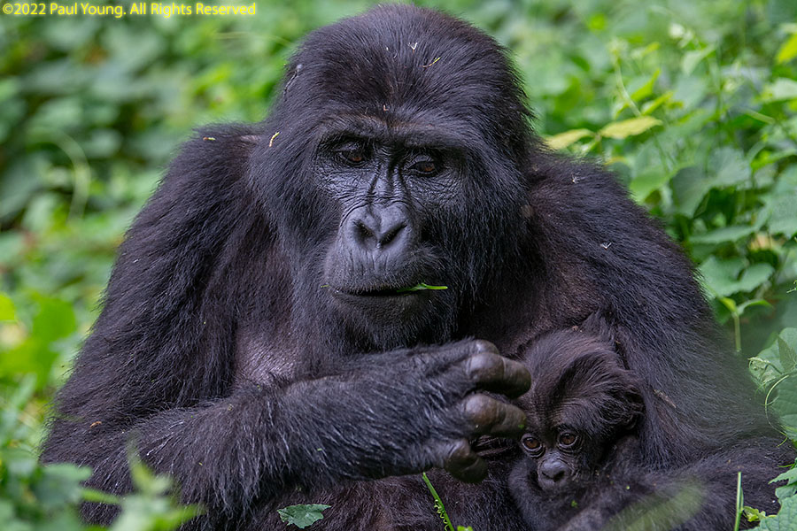 The main tourist activity is gorilla tracking. These animals are the eastern mountain gorilla, Gorilla beringei beringei.