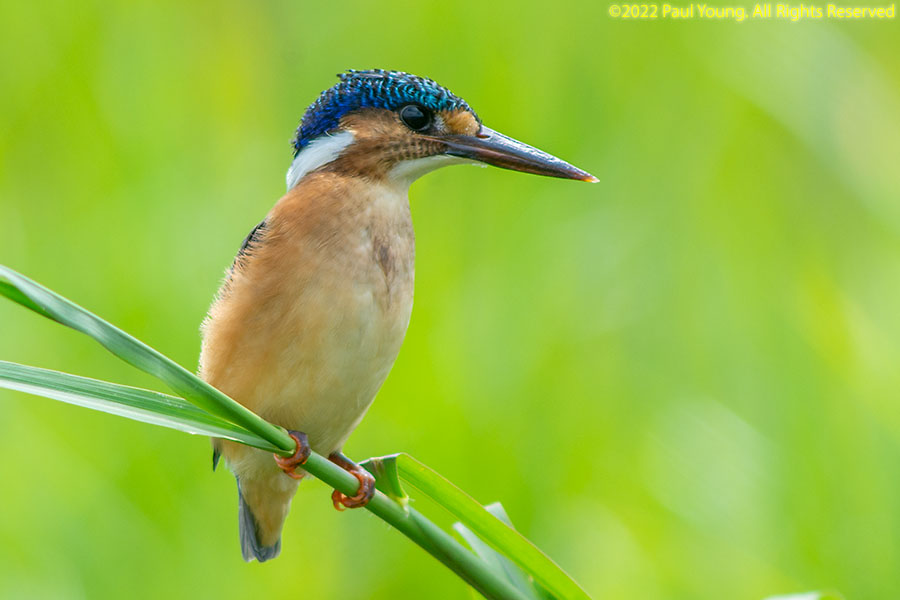 Malachite kingfisher, Corythornis cristatus, adult (left) and juvenile (right)
