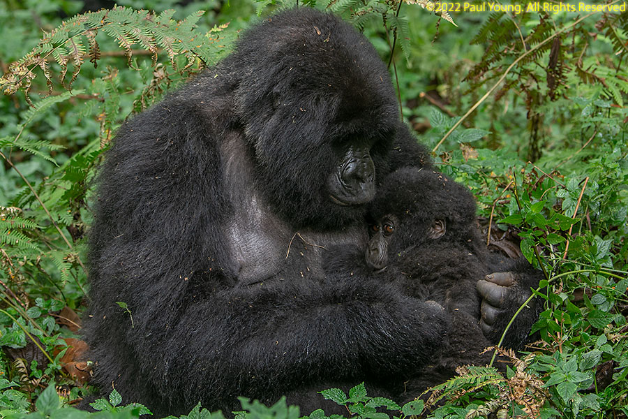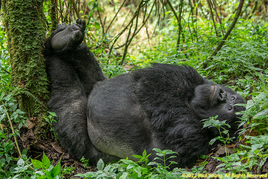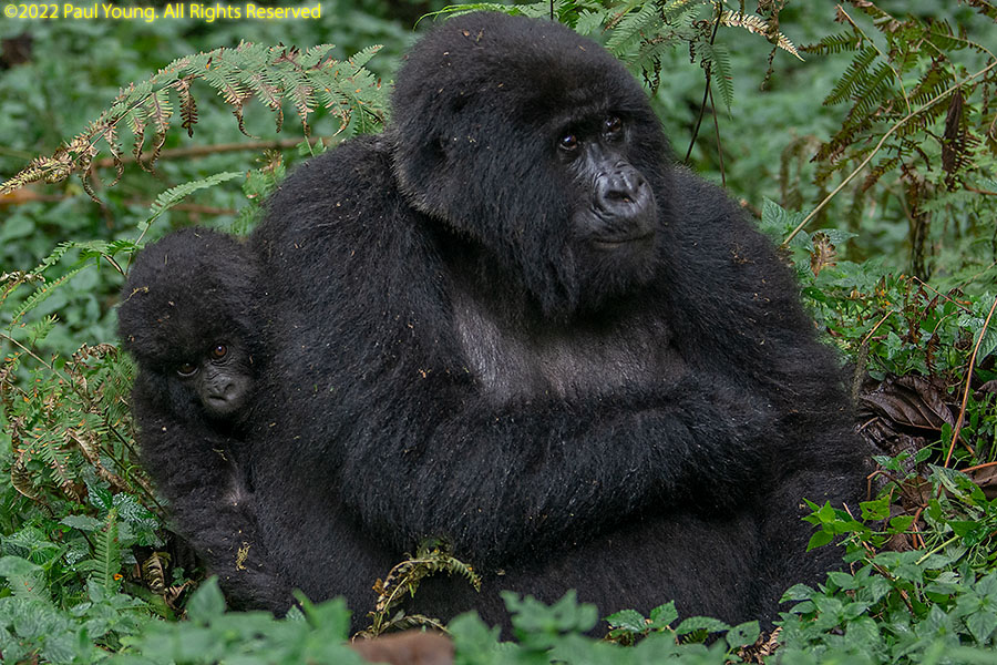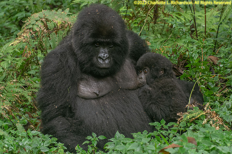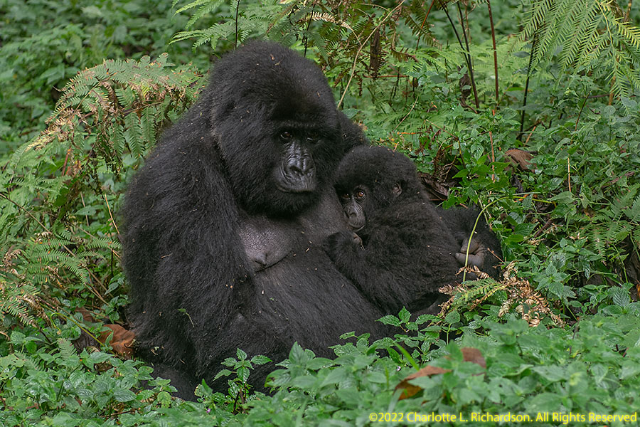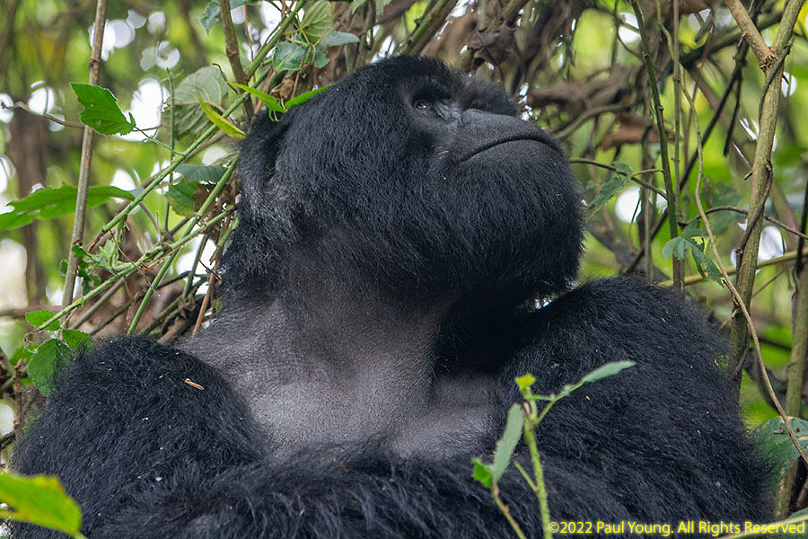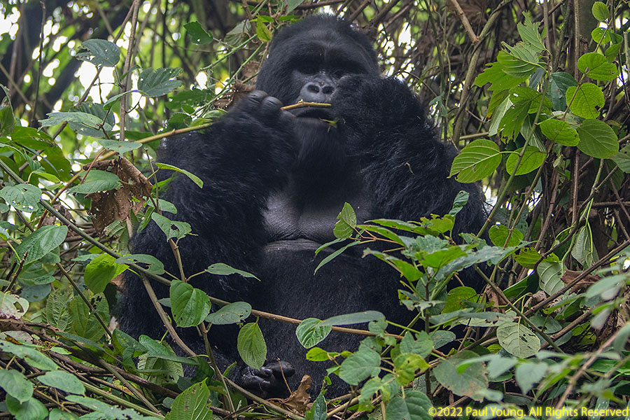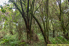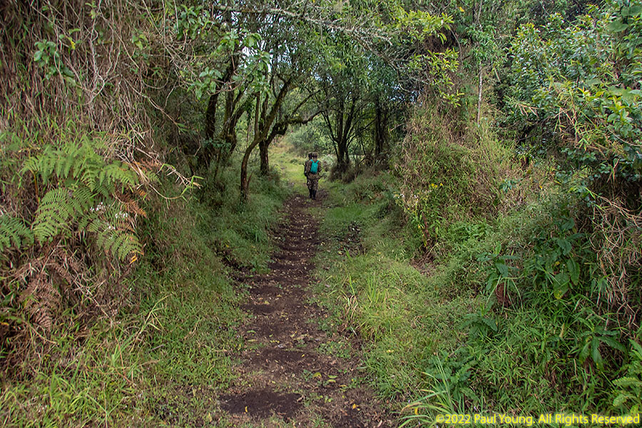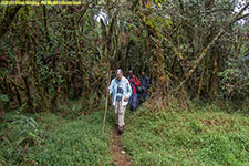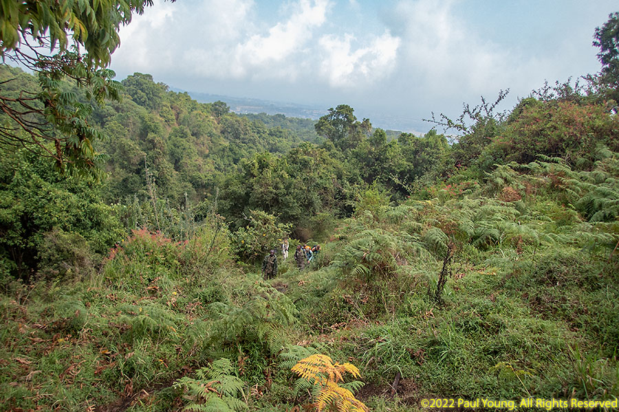 The 13.2 square mile park is located in the Virunga Mountains, a chain of isolated free-standing volcanic cones, and encompasses three inactive volcanoes. It ranges in elevation from 2227 meters to 4127 meters (7306' to 13,540'). Tracking of either the gorillas or the golden monkeys can be arduous at those elevations. Bwindi Impenetrable National Park has more families of habituated mountain gorillas at considerably lower elevations, but the golden monkeys can only be seen at Mgahinga.