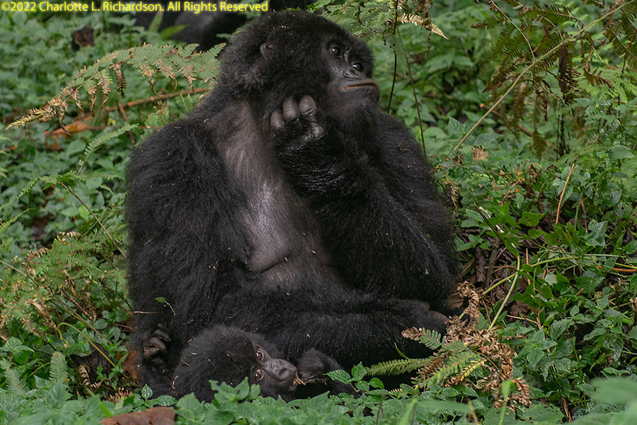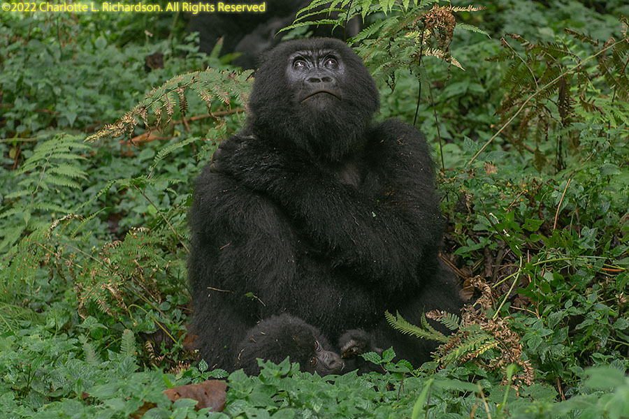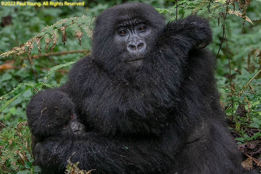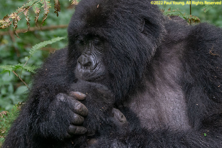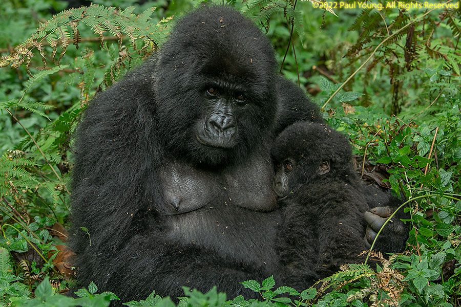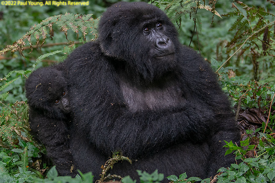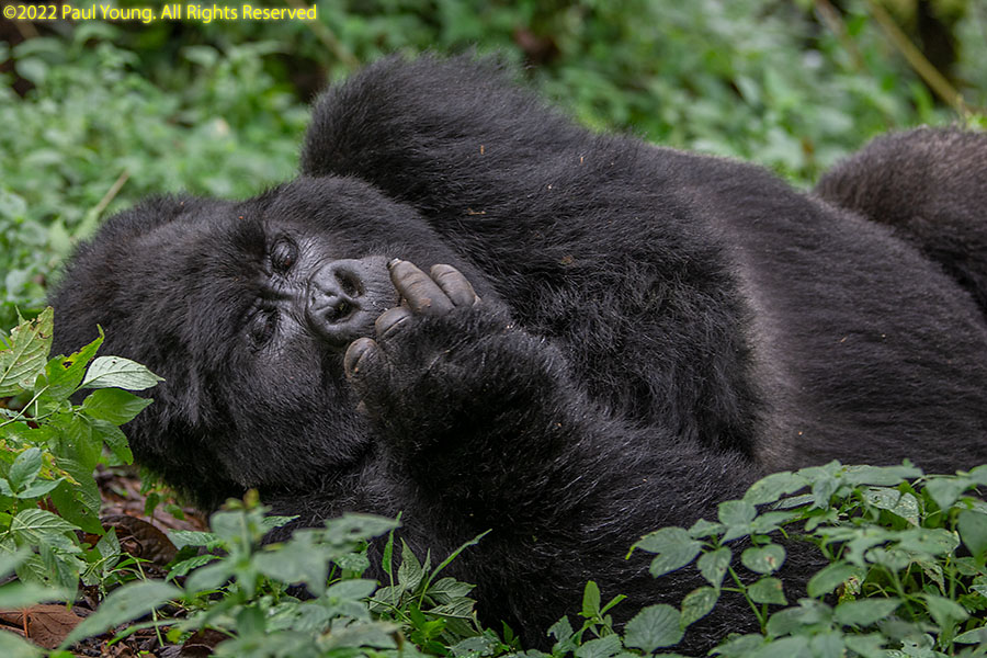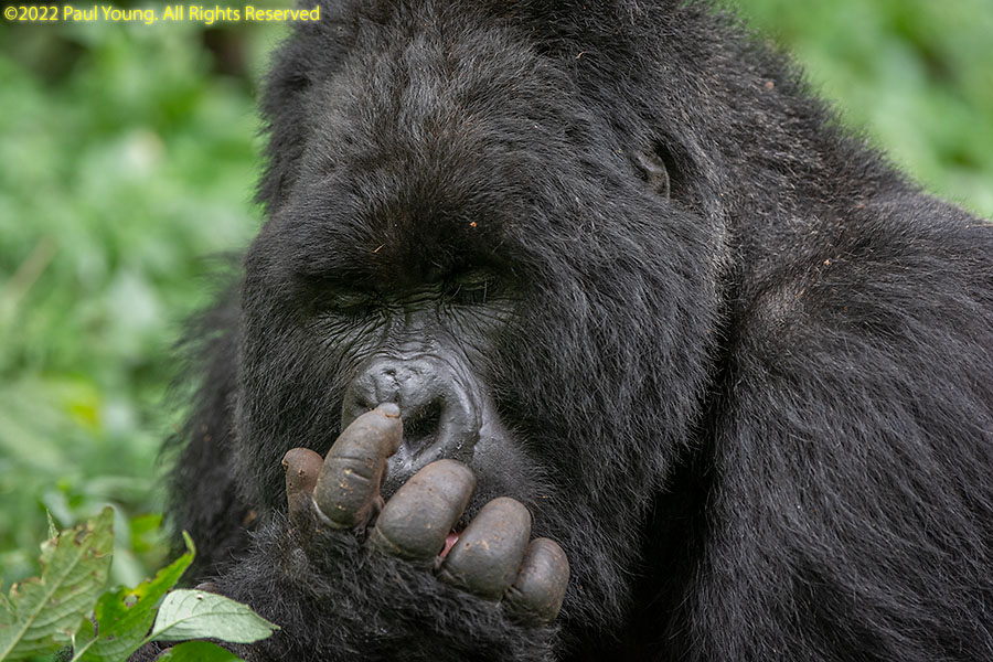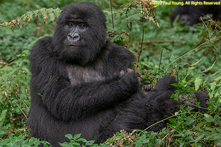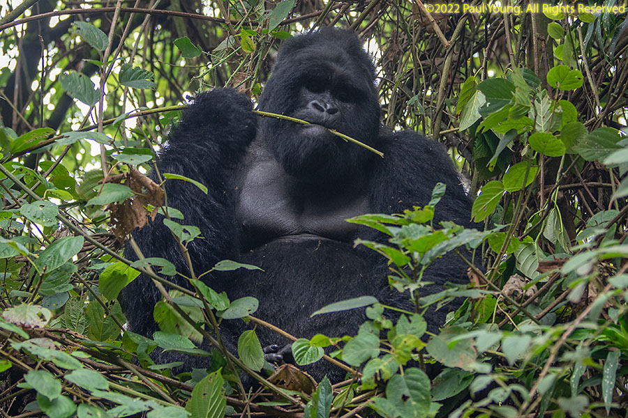 Mgahinga Gorilla National Park, Uganda's smallest park at the southwest tip of the country near Kisoro, protects mountain gorillas, Gorilla beringei beringei, and the endemic, endangered, bamboo-eating golden monkey (Cercopithecus kandti).
