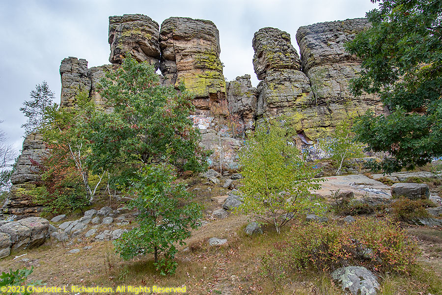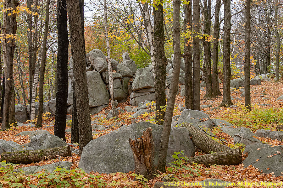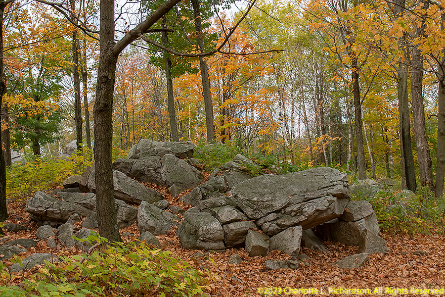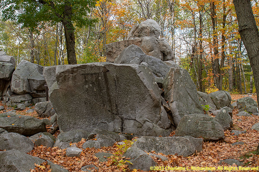 Roche-a-Cri (from the French: "crevice in the rock") has a 300' rock outcropping, the largest of these formations, with native American petroglyphs.
