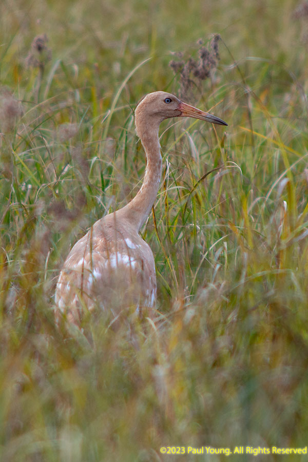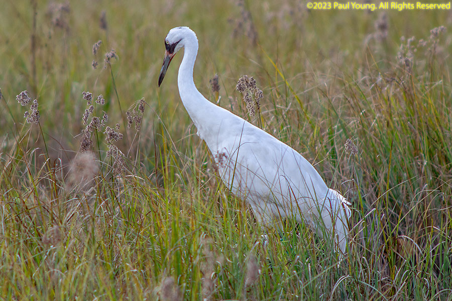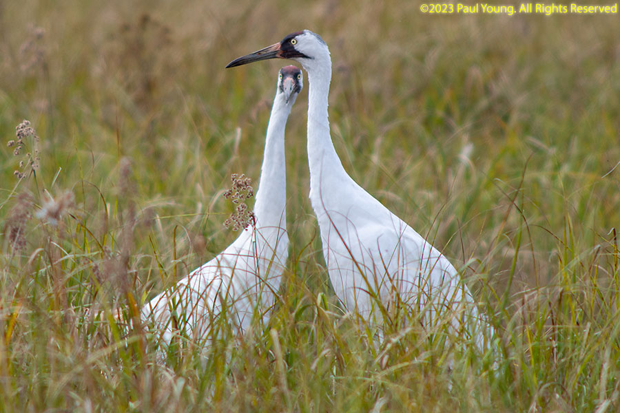Whooping cranes are the tallest bird native to North America, from 1.2m to 1.6m (4'1" to 5'3") tall, with a swingspan of 2m to 2.3m (6'7" to 7'7").