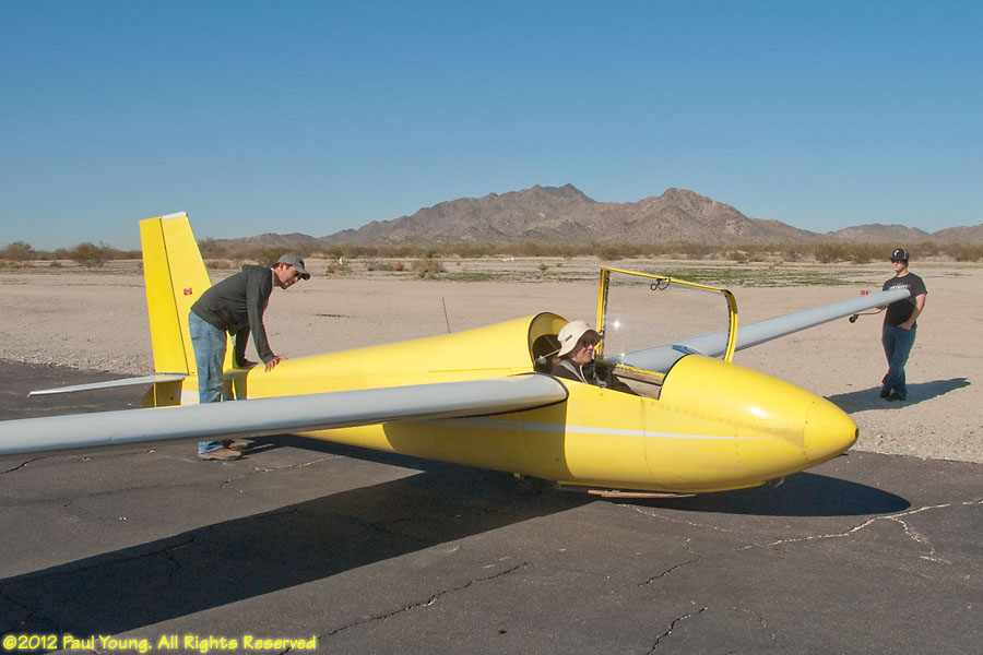 My last day at Estrella, I flew a single-place glider for the first time, flying five flights in this Schweizer 1-26. As someone described it, it's like dancing in the sky!