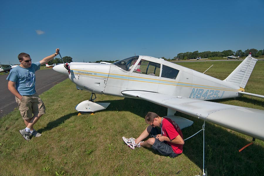 As a new student pilot, Charlotte flew to Oshkosh for Airventure 2010 with Devan Wiebe and Troy DiGiovanni in their Piper Cherokee, while Paul took a commercial flight with most of the luggage. Our route west from 3B3 took us over Niagara Falls. We ended up overnighting in Lansing, Michigan, due to thunderstorms, and flew into Fond du Lac the next morning. Later in the week the boys moved the plane to Oshkosh.