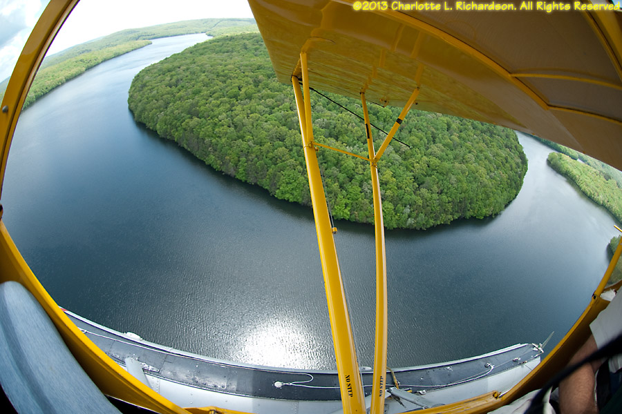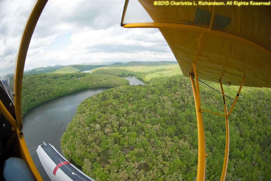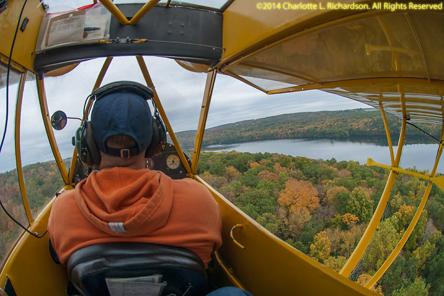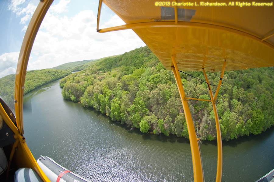 Another visit to fly this Cub on Halloween 2015. The wind was almost dead-calm, so a lot of this flight was glassy-water takeoffs and landings. I had a camera along myself this time and could shoot photographs while Tony handled the Cub. The foliage this late in the season was mostly oaks. After the flight and lunch, Paul and I took a walk around Lovers Leap State Park to photograph the same area from ground level that I had photographed from the air.