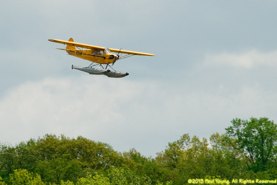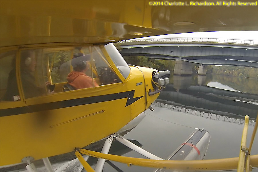Another visit to fly this Cub with Tony, October 13, 2014. The cowling has been fixed to match the new exhaust system. We mounted the GoPro on the right wing strut. This flight was almost entirely glassy water takeoffs and landings. I step-taxiied under the I84 bridge at one point, taking off again just beyond it.