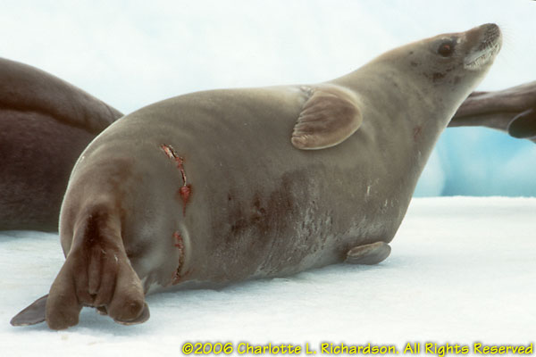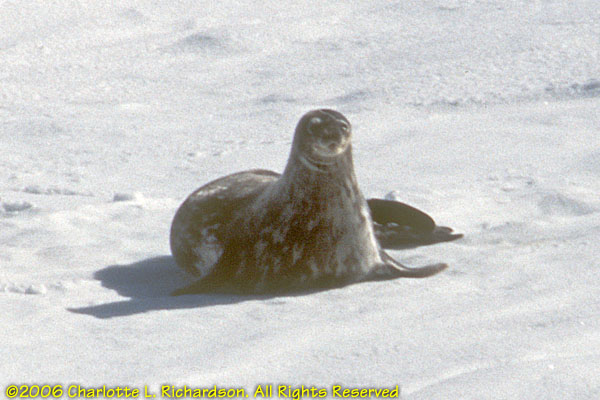 Weddell seals are slightly larger than crabeater seals but have very small heads. They are a coastal inshore species and are found around the fast ice. Weddell seals eat fish.
