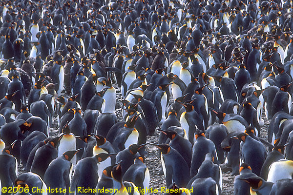 This glacial plain is amazing, a huge king penguin colony! A hundred thousand pairs of adult birds, with eggs, new chicks, and older chicks make this a fantastic place. There are fur seals here as well. And where there are penguins, there are skuas. The plain faces due north on the Bay of Isles and is backed by the Grace and Lucas Glaciers.