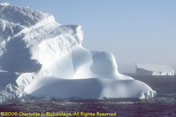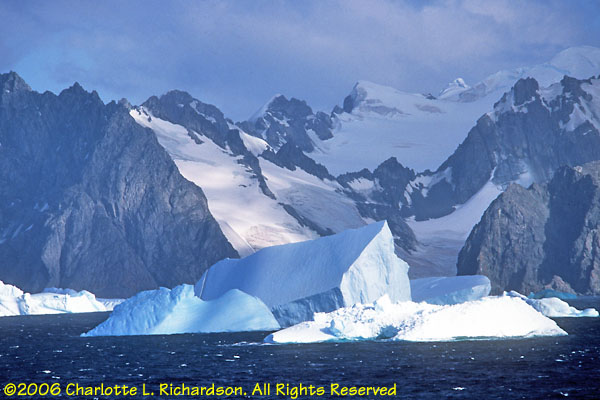 We did not land in the South Orkneys, but traversed the area to see the huge tabular icebergs. These calf off the Weddell Sea's ice shelves and are driven northward by prevailing winds and currents. The large tabular icebergs ground on the shallow continental shelf along the south side of the South Orkneys, forming this "iceberg graveyard".