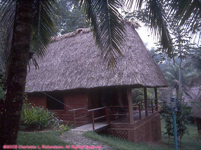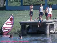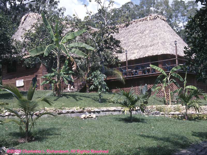 This is where we stayed for most of our land touring, including Caracol, Xunantunich, Chechem Ha, Tikal, and the places on this page. The photos show our cabin, the dining room, and some local children playing in the river.