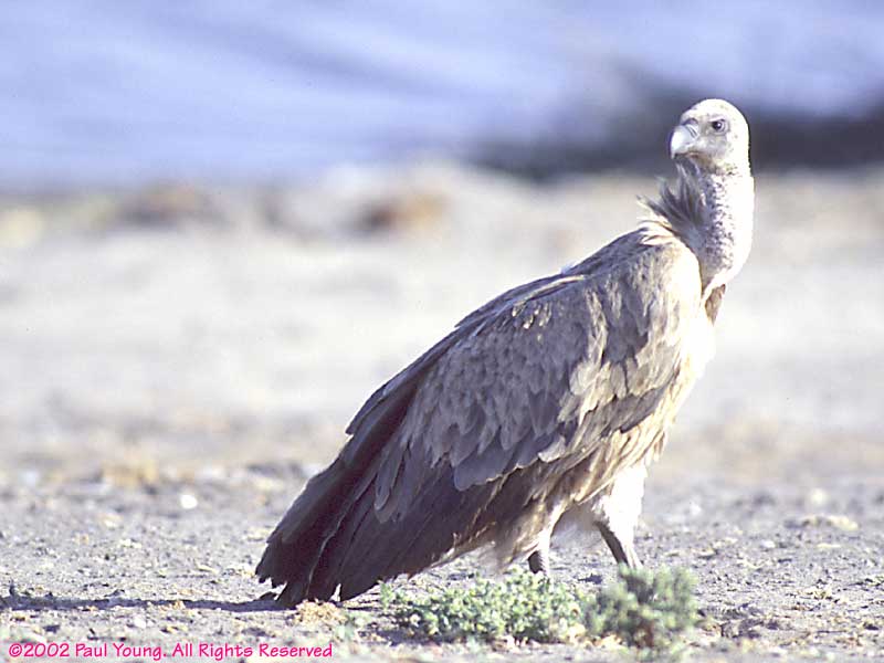 The white-backed vulture on the right is sharing a perch with an immature hooded vulture.