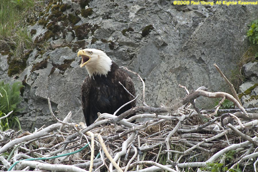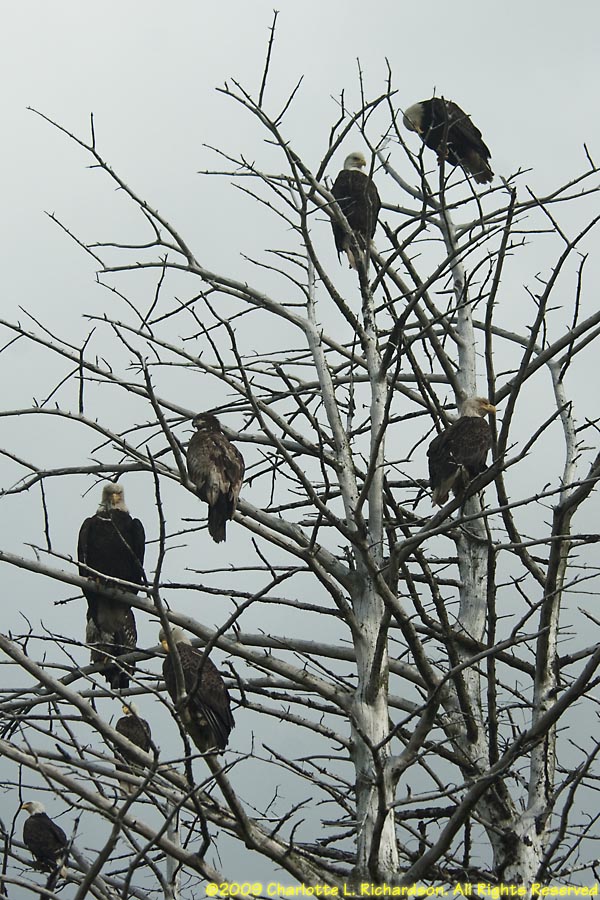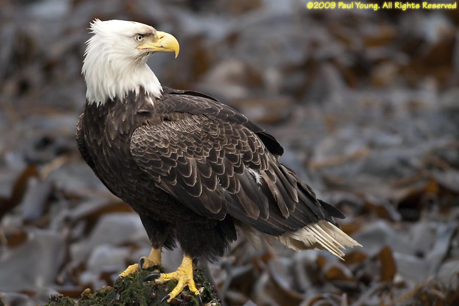 Several hundred bald eagles, Haliaeetus leucocephalus, live year-round on Unalaska Island in the Aleutians.