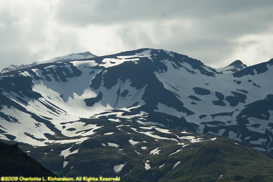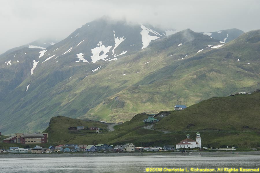 Dutch Harbor, on Unalaska Island, is a big fishing port for pollock and for king crab. Most of the pollock is shipped to Japan in refrigerator containers to be made into surimi (artificial crabmeat). We asked a worker at one of the processing plants how much fish they handle. In a twelve-hour shift, they process 88,000 pounds of pollock! There is not a lot of tourism, though we did see a Japanese sea kayaking group. The Russians named the town Dutch Harbor because they believed that the island was discovered by the Dutch.