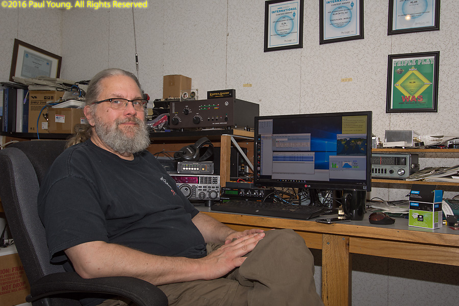 Paul operated the IARU contest from KL2R, the Two Rivers Contest Club station, in Two Rivers, with N1TX, KL1JP, and WL7BDO. The small town of Two Rivers lies between mile 13 (the Little Chena River) and mile 25 (the Chena River) on the Chena Hot Springs Road northeast of Fairbanks. The town borders the Chena River State Recreation Area. Paul had a lot of fun despite being put off the air for several hours due to thunderstorms.