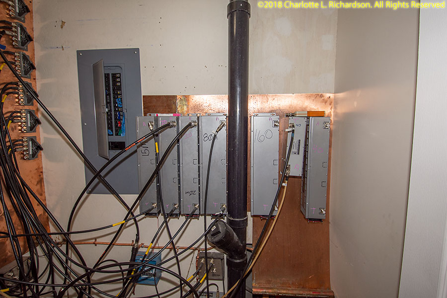 This time not all that much antenna or tower work needed to be done. Steve and Wigi wanted to swap out several working-but-old Tailtwister antenna rotors for Yaesu rotors, which necessitated rewiring the Green Heron rotor control boxes. Tree, N6TR, did the tower work, and he and Paul rewired the controllers.