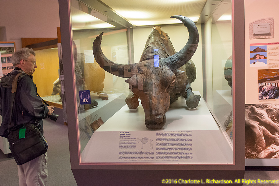 Other fossils, including "Blue Babe", a mummified steppe bison preserved by the permafrost.