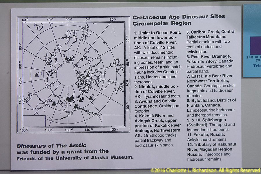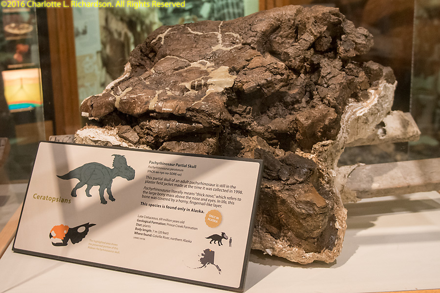 The Museum of the North at the University of Alaska Fairbanks campus exhibits the natural, artistic, and cultural heritage of Alaska and the circumpolar North. The museum first opened in 1929. During our visit the museum was hosting a special exhibit on polar dinosaurs.