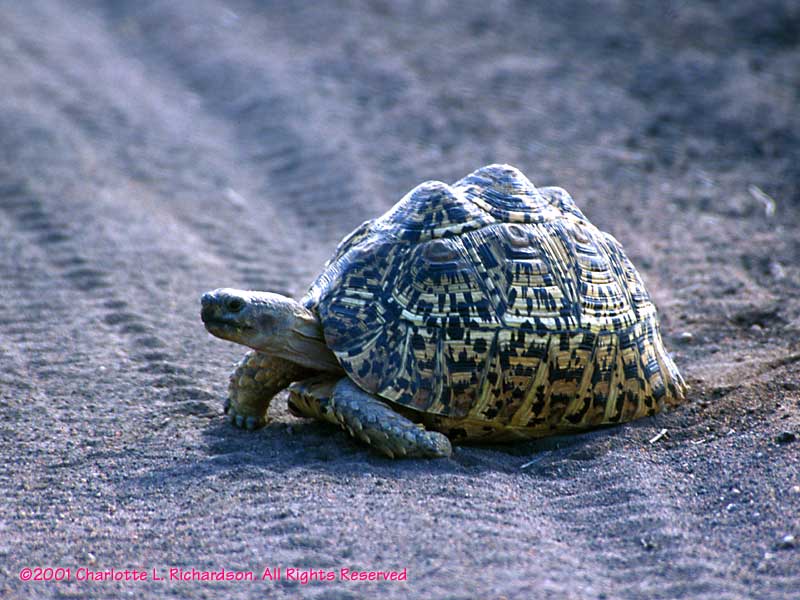 Almost all animals moved out of the way when we drove through in the Toyota minibus. The exceptions were elephants and this mighty leopard tortoise. This animal refused to move and forced us to detour around it.