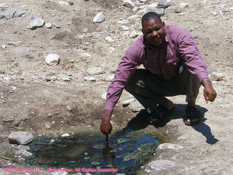 Here is Philemon explaining the origin of a sulfur pool.