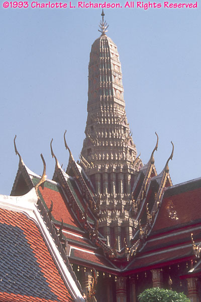 The Grand Palace (Phra Burom Maha Ratcha Wag) complex in the center of Bangkok on the Chao Phraya River was the official residence of the king until 1925 and is still used for official events. Construction began in 1782. The Temple of the Emerald Buddha (Wat Phrakam) is a royal chapel, built in 1783.
